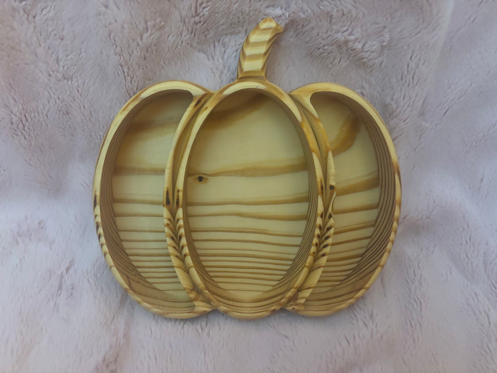 Handcrafted from solid pine, this tray is shaped like a pumpkin and finished smooth to highlight the wood’s natural character. Its lighter tone and simple grain give it a rustic charm that pairs perfectly with seasonal décor.